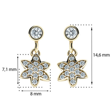 Detské visiace náušnice Danfil kvetinky C2206 zo žltého zlata, Mint Green, zapínanie balónik