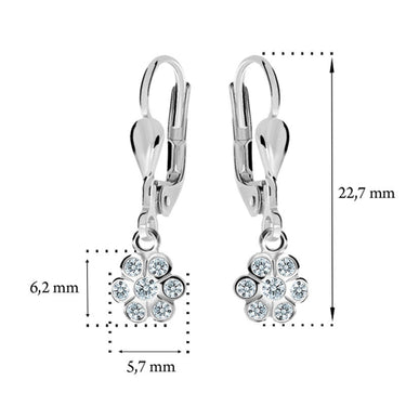Detské visiace náušnice Danfil kvetiny C1737 z bieleho zlata, Pink, zapínanie klapka