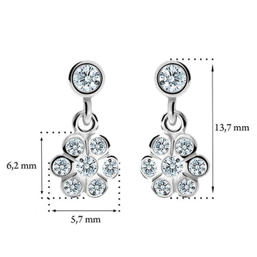 Detské visiace náušnice Danfil kvetiny C1737 z bieleho zlata, Ruby Dark, zapínanie balónik
