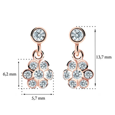 Detské visiace náušnice Danfil kvetiny C1737 zo ružového zlata, White, zapínanie balónik
