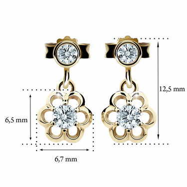 Detské visiace náušnice Danfil kvetiny C1947 zo žltého zlata, Pink, zapínanie puzeta