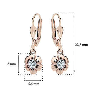 Detské visiace náušnice Danfil kvetiny C2151 zo ružového zlata, Mint Green, zapínanie klapka