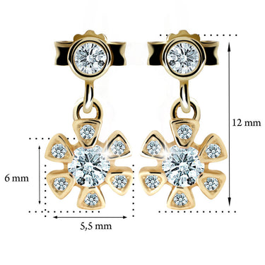Detské visiace náušnice Danfil kvetiny C2156 zo žltého zlata, White, zapínanie puzeta