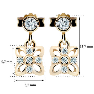 Detské visiace náušnice Danfil kvetiny C2215 zo žltého zlata, White, zapínanie puzeta