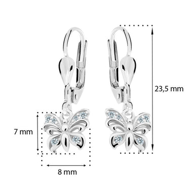 Detské visiace náušnice Danfil motýlik C2226 z bieleho zlata, White, zapínanie klapka