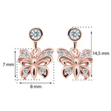 Detské visiace náušnice Danfil motýlik C2226 zo ružového zlata, White, zapínanie balónik
