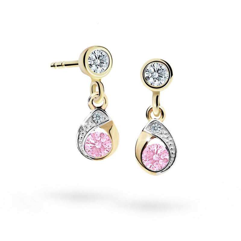 Detské visiace náušnice Danfil slzičky C1898 zo žltého zlata, Pink, zapínanie balónik