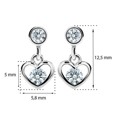 Detské náušničky v tvare srdiečka so zapínaním typu visací balónik sú vyrobené z bieleho 14 k zlata a osadené červenými zirkónmi. Zlaté náušnice majú puncovú značkou 585/1000 od štátneho puncového úradu. Tento typ zapínania považujeme za jeden z najbezpečnejších. Všetky rozmery sú podrobne rozkreslené na podpornej fotografii. Ku každým náušničkám je možné vybrať si aj ladiaci prívesok s retiazkou.