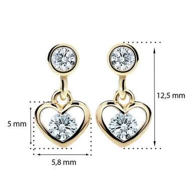 Detské visiace náušnice Danfil srdiečka C1943 zo žltého zlata, Tcf Red, zapínanie balónik