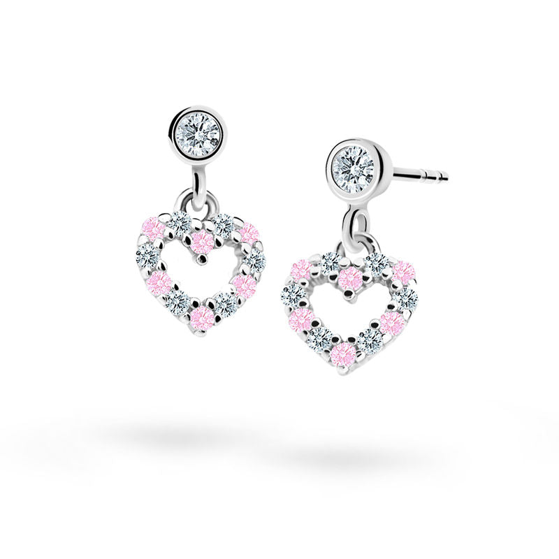 Detské visiace náušnice Danfil srdiečka C2157 z bieleho zlata, Pink, zapínanie balónik