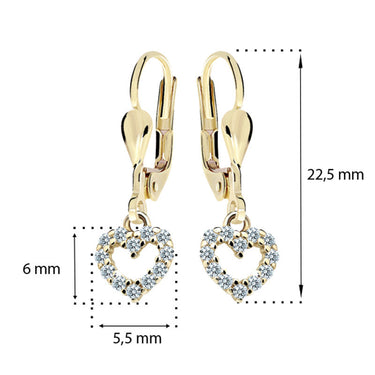 Detské visiace náušnice Danfil srdiečka C2157 zo žltého zlata, White, zapínanie klapka