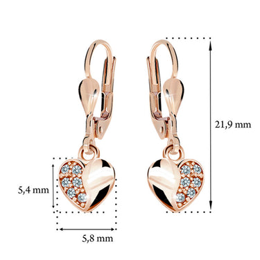 Detské visiace náušnice Danfil srdiečka C2160 zo ružového zlata, Pink, zapínanie klapka