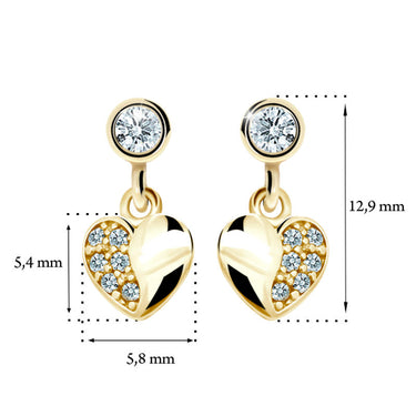 Detské visiace náušnice Danfil srdiečka C2160 zo žltého zlata, Ruby Dark, zapínanie balónik