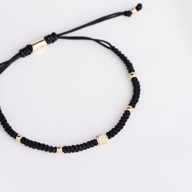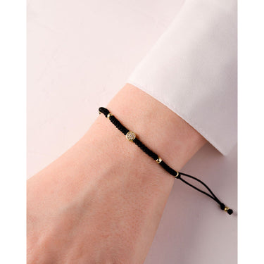 Dámsky šnúrkový náramok je tvorený diamantovú plackou vyrobenú z žltého 14k 585/1000 zlata v kombinácii s pevne zapletenými uzlíky. V diamantovom komponentu je usadené 7 briliantov o celkovej váhe 0,029ct. Zapínanie je riešené praktickým predlžovacím a skracovacím mechanizmom pre obvod zápästia od 15 do 20cm. Šnúrkový náramok nie je nutné dávať dole na šport ani kúpanie a dorazí uložený v luxusnej krabičke.