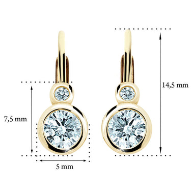 Detské náušničky v tvare klasik so zapínaním typu klapka sú vyrobené z žltého 14k zlata a osadené fialovými kamienkami. Zlaté náušnice majú puncovú značku 585/1000 od štátneho puncového úradu. Tento typ zapínania považujeme za jeden z najbezpečnejších a je najvhodnejší pre malé slečny vo veku od cca 5 rokov. Na tento typ zapínania je možné za príplatok umiestniť bezpečnosťou poistky. Všetky rozmery sú podrobne rozkreslené na podpornej fotografii. Ku každým náušničkám je možné vybrať si aj ladiaci prívesok s retiazkou.