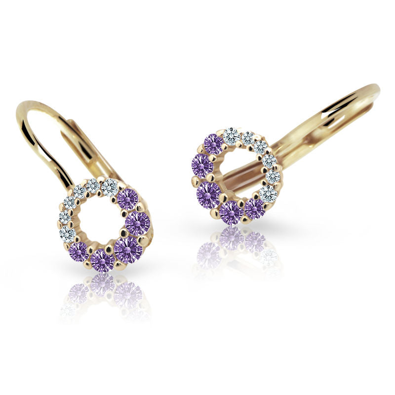 Dievčenské náušnice Danfil C2154 zo žltého zlata, Amethyst, zapínanie klapka