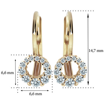 Detské náušničky v tvare klasik so zapínaním typu klapka sú vyrobené z žltého 14k zlata a osadené fialovými kamienkami. Zlaté náušnice majú puncovú značku 585/1000 od štátneho puncového úradu. Tento typ zapínania považujeme za jeden z najbezpečnejších a je najvhodnejší pre malé slečny vo veku od cca 5 rokov. Na tento typ zapínania je možné za príplatok umiestniť bezpečnosťou poistky. Všetky rozmery sú podrobne rozkreslené na podpornej fotografii. Ku každým náušničkám je možné vybrať si aj ladiaci prívesok s retiazkou.