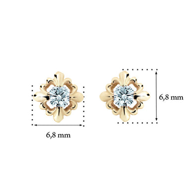 Detské náušničky v tvare klasik so zapínaním typu balónik sú vyrobené z žltého 14k zlata a osadené tmavo modrými zirkónmi. Zapínanie je vhodné až od 6 mesiacov. Všetky rozmery sú podrobne rozkreslené na podpornej fotografii. Ku každým náušničkám je možné vybrať si aj ladiaci prívesok s retiazkou.