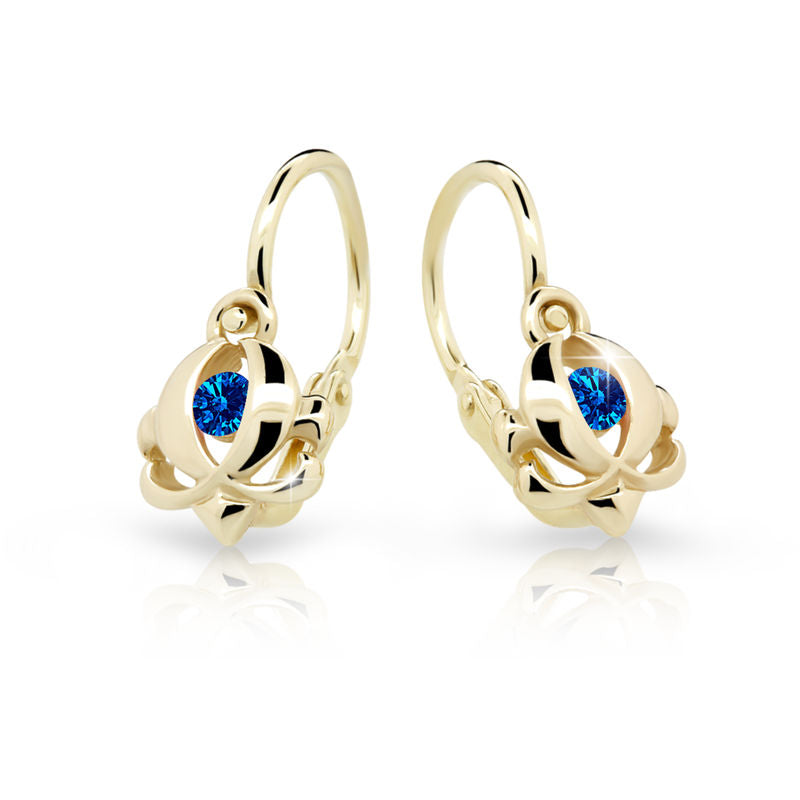 Dievčenské náušnice Danfil C2218 zo žltého zlata, Dark Blue, zapínanie brizura