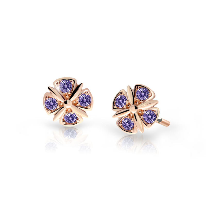 Dievčenské náušnice Danfil C2245 zo ružového zlata, Amethyst, zapínanie puzeta