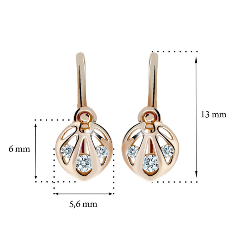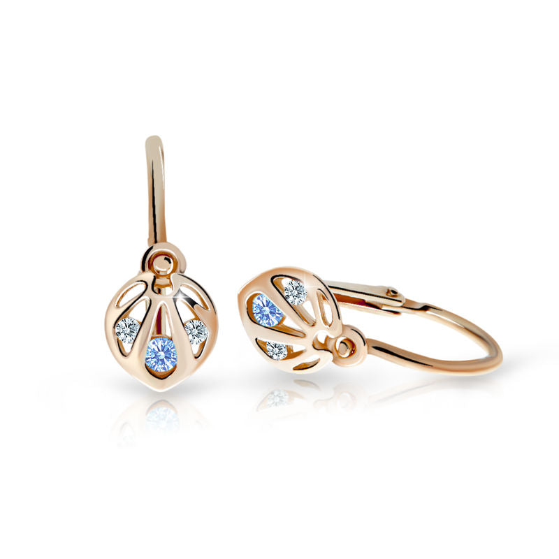 Dievčenské náušnice Danfil C2265 zo ružového zlata, Arctic Blue, zapínanie brizura