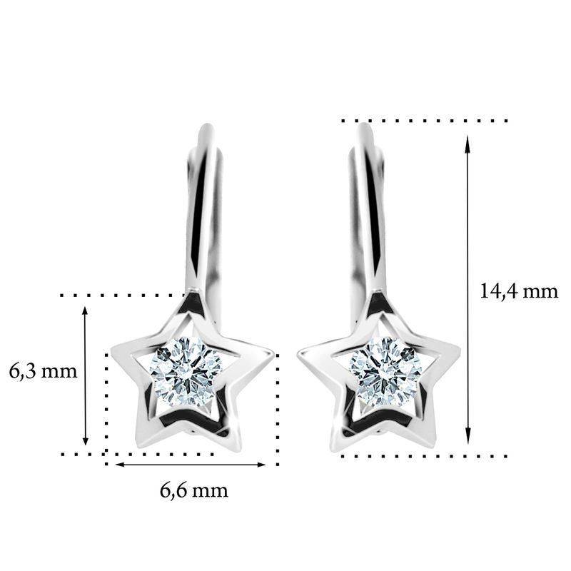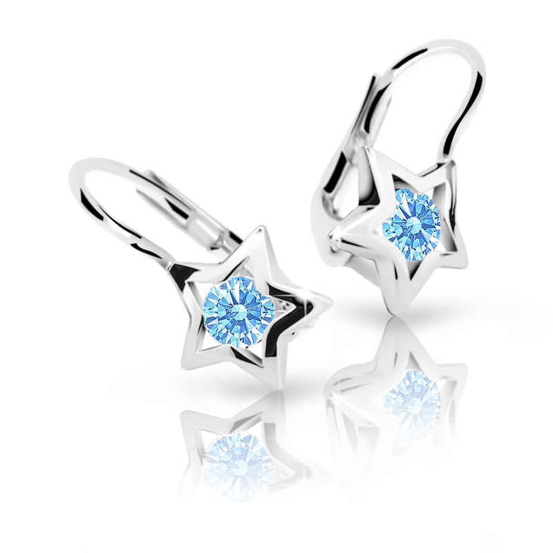 Dievčenské náušnice Danfil hviezdičky C1942 z bieleho zlata, Arctic Blue, zapínanie klapka