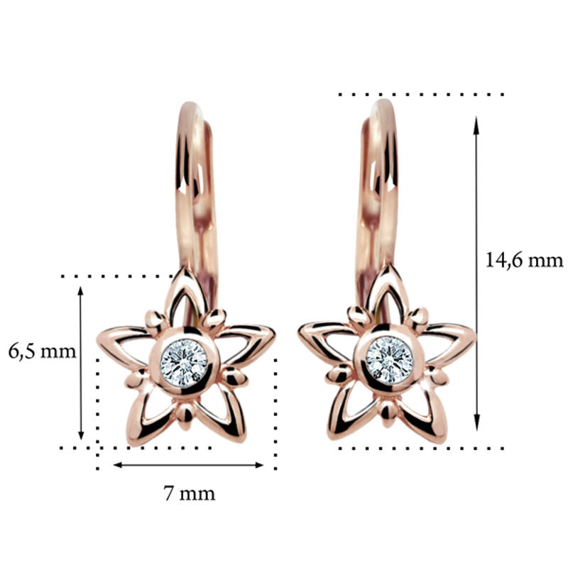 Dievčenské náušnice Danfil hviezdičky C1996 zo ružového zlata, Arctic Blue, zapínanie klapka