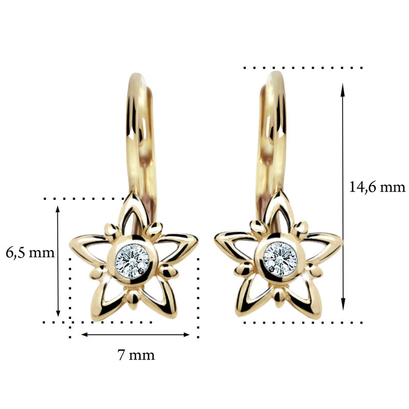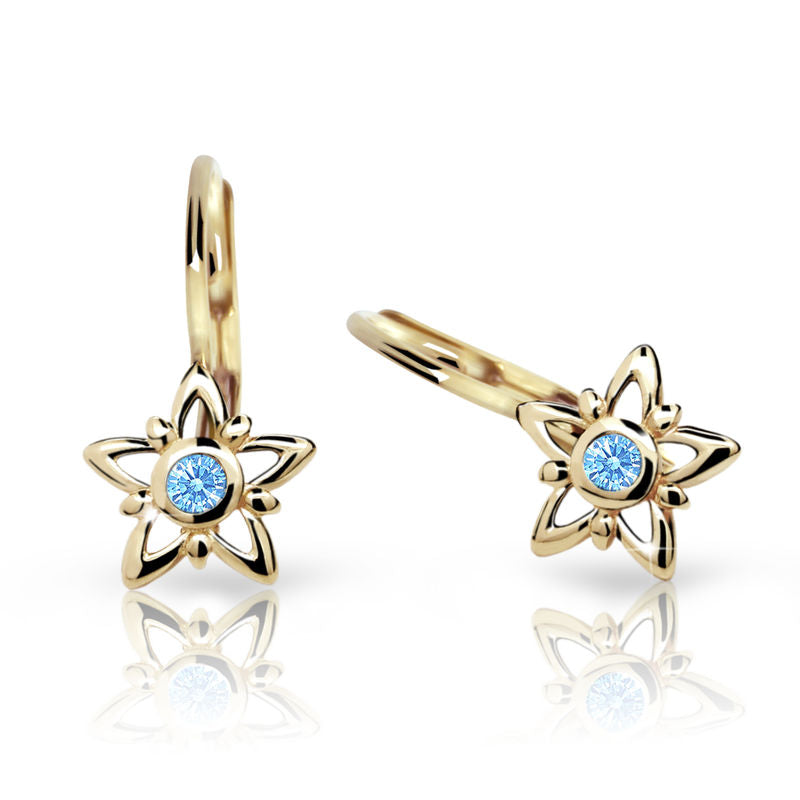 Dievčenské náušnice Danfil hviezdičky C1996 zo žltého zlata, Arctic Blue, zapínanie klapka