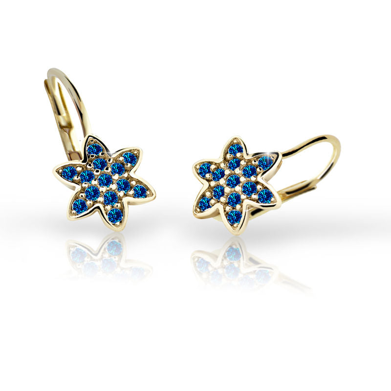 Dievčenské náušnice Danfil kvetinky C2206 zo žltého zlata, Dark Blue, zapínanie klapka