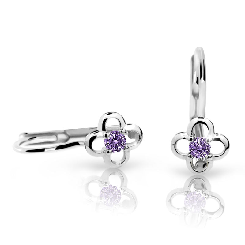 Dievčenské náušnice Danfil kvetiny C1944 z bieleho zlata, Amethyst, zapínanie klapka