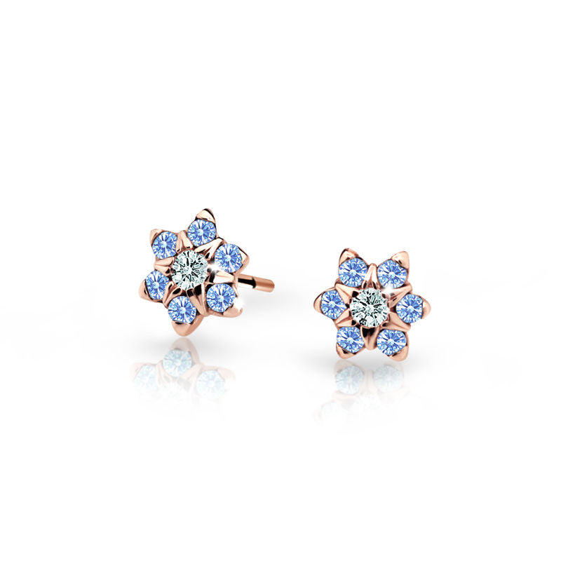 Dievčenské náušnice Danfil kvetiny C2152 zo ružového zlata, Arctic Blue, zapínanie balónik