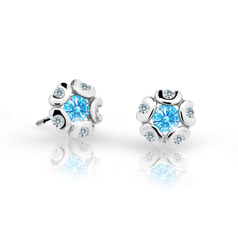 Dievčenské náušnice Danfil kvetiny C2178 z bieleho zlata, Arctic Blue, zapínanie puzeta