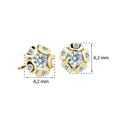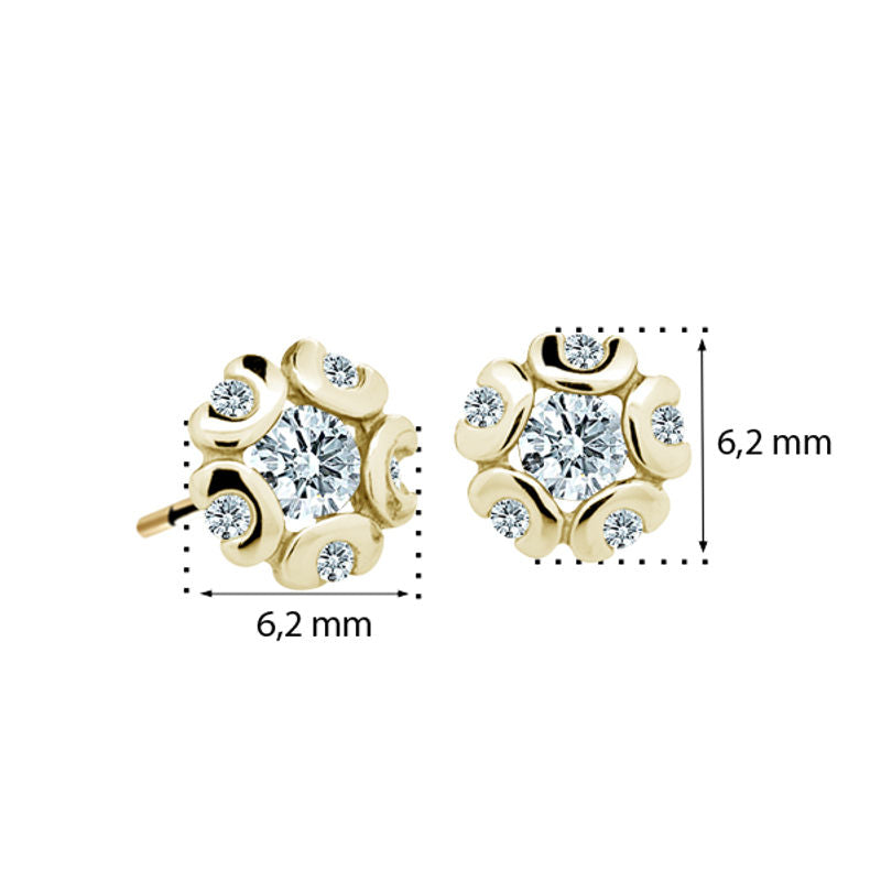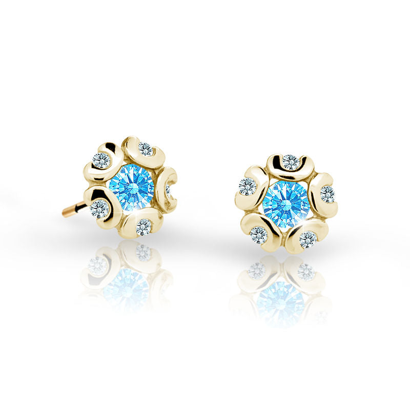 Dievčenské náušnice Danfil kvetiny C2178 zo žltého zlata, Arctic Blue, zapínanie puzeta