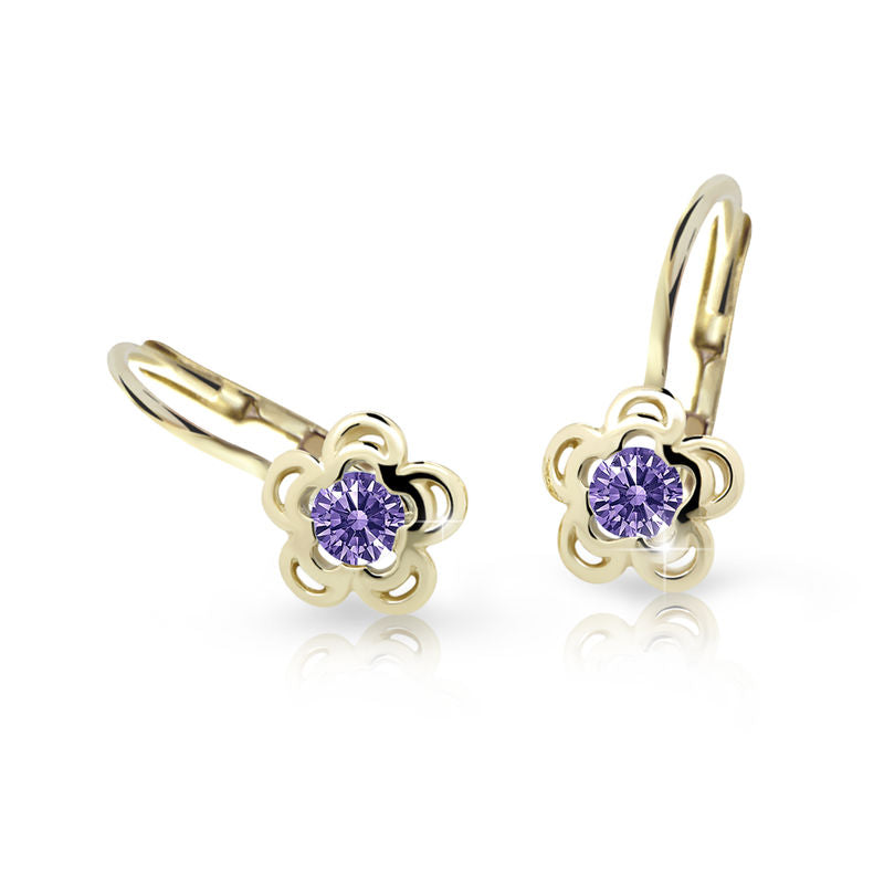 Dievčenské náušnice Danfil kvetiny C2204 zo žltého zlata, Amethyst, zapínanie klapka