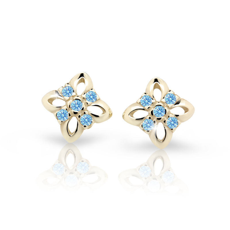 Dievčenské náušnice Danfil kvetiny C2215 zo žltého zlata, Arctic Blue, zapínanie puzeta