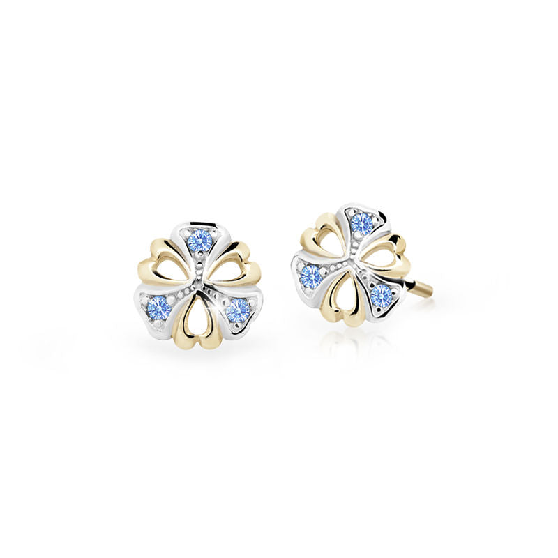 Dievčenské náušnice Danfil kvetiny C2230 zo žltého zlata, Arctic Blue, zapínanie puzeta
