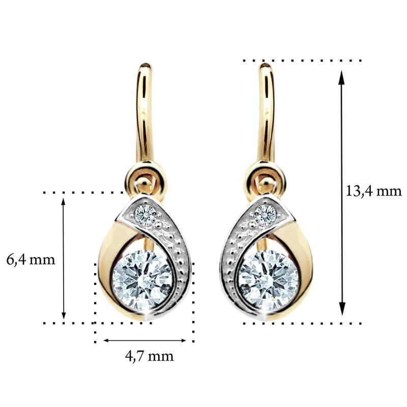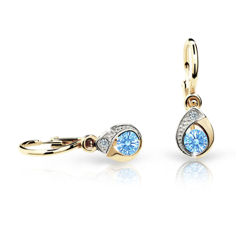 Dievčenské náušnice Danfil slzičky C1898 zo žltého zlata, Arctic Blue, zapínanie brizura
