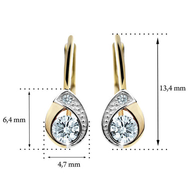 Dievčenské náušnice Danfil slzičky C1898 zo žltého zlata, Arctic Blue, zapínanie klapka