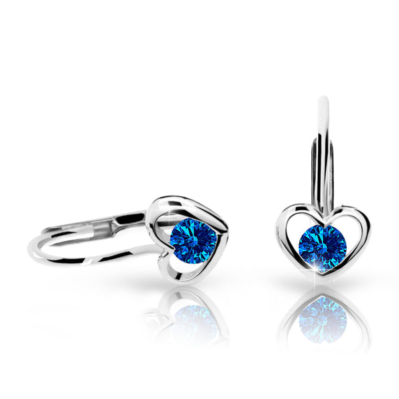 Dievčenské náušnice Danfil srdiečka C1943 z bieleho zlata, Dark Blue, zapínanie klapka