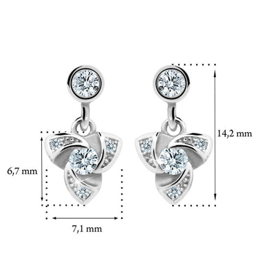 Detské náušničky v tvare klasik so zapínaním typu visací balónik sú vyrobené z bieleho 14 k zlata a osadené fialovými zirkónmi. Zlaté náušnice majú puncovú značkou 585/1000 od štátneho puncového úradu. Tento typ zapínania považujeme za jeden z najbezpečnejších. Všetky rozmery sú podrobne rozkreslené na podpornej fotografii. Ku každým náušničkám je možné vybrať si aj ladiaci prívesok s retiazkou.