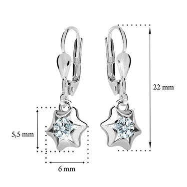 Dievčenské visiace náušnice Danfil hviezdičky C2159 z bieleho zlata, Arctic Blue, zapínanie klapka