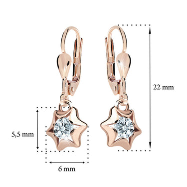 Dievčenské visiace náušnice Danfil hviezdičky C2159 zo ružového zlata, Arctic Blue, zapínanie klapka
