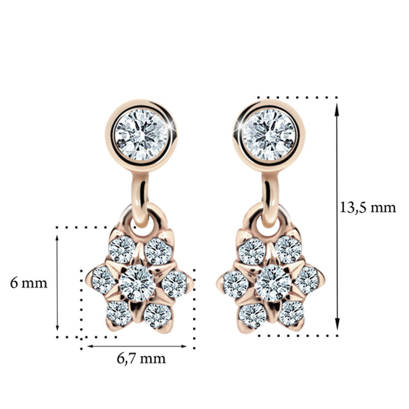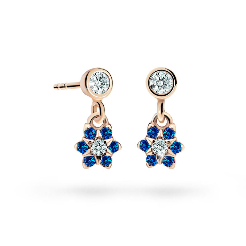 Dievčenské visiace náušnice Danfil kvetiny C2152 zo ružového zlata, Dark Blue, zapínanie balónik