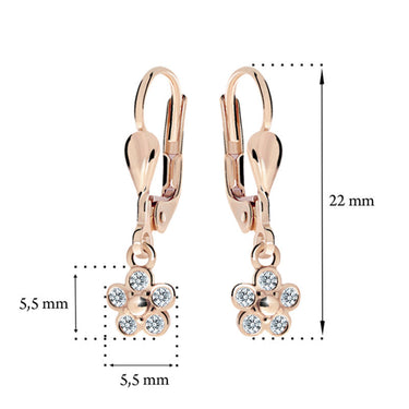 Dievčenské visiace náušnice Danfil kvetiny C2744 zo ružového zlata, Arctic Blue, zapínanie klapka