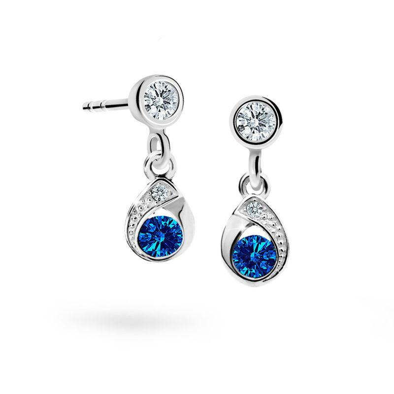Dievčenské visiace náušnice Danfil slzičky C1898 z bieleho zlata, Dark Blue, zapínanie balónik