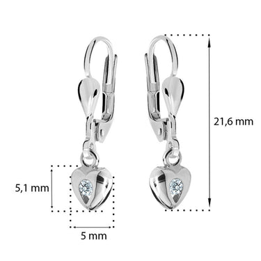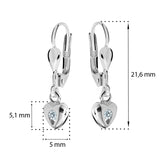 Dievčenské visiace náušnice Danfil srdiečka C1556 z bieleho zlata, Arctic Blue, zapínanie klapka