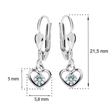 Dievčenské visiace náušnice Danfil srdiečka C1943 z bieleho zlata, Arctic Blue, zapínanie klapka
