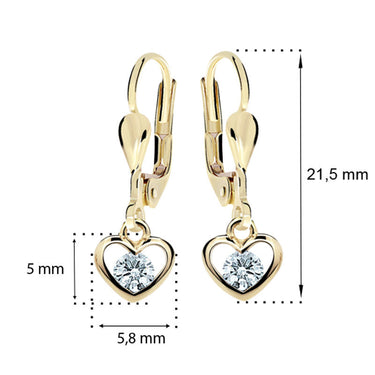 Dievčenské visiace náušnice Danfil srdiečka C1943 zo žltého zlata, Arctic Blue, zapínanie klapka