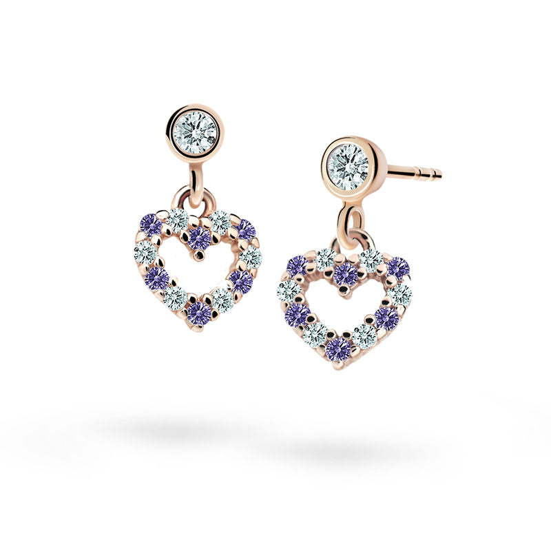 Dievčenské visiace náušnice Danfil srdiečka C2157 zo ružového zlata, Amethyst, zapínanie balónik