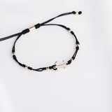 Dámsky zlatý náramok so šnúrkou a kotvou je doplnený celozlatými guličkami a detailne spracovanými uzlíky. Všetky komponenty sú vyrobené z žltého 14k 585/1000 zlata. Zapínanie je riešené praktickým predlžovacím a skracovacím mechanizmom pre obvod zápästia od 15 do 20cm. Šnúrkový náramok nie je nutné dávať dole na šport ani kúpanie a dorazí uložený v luxusnej darčekovej krabičke.